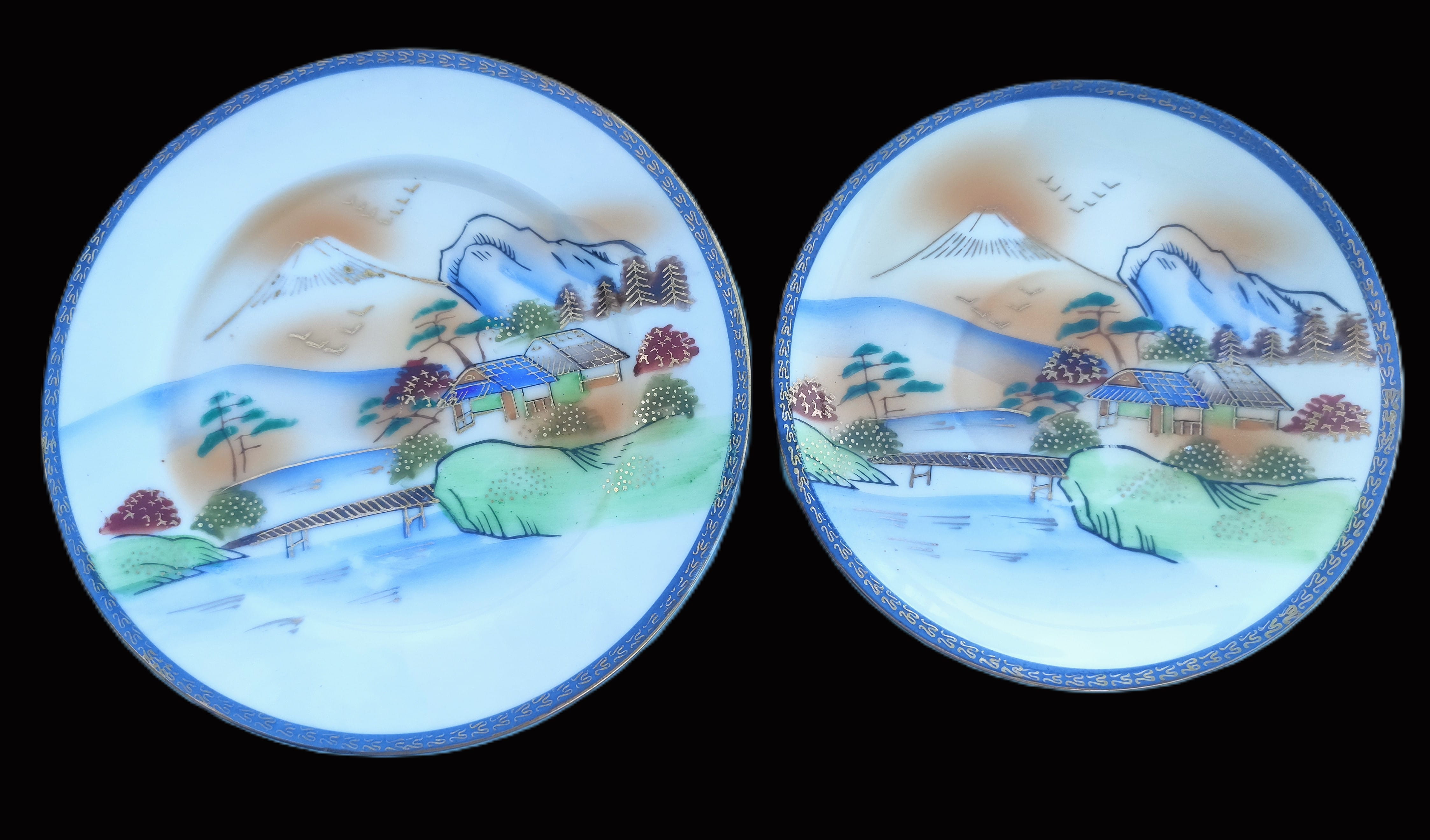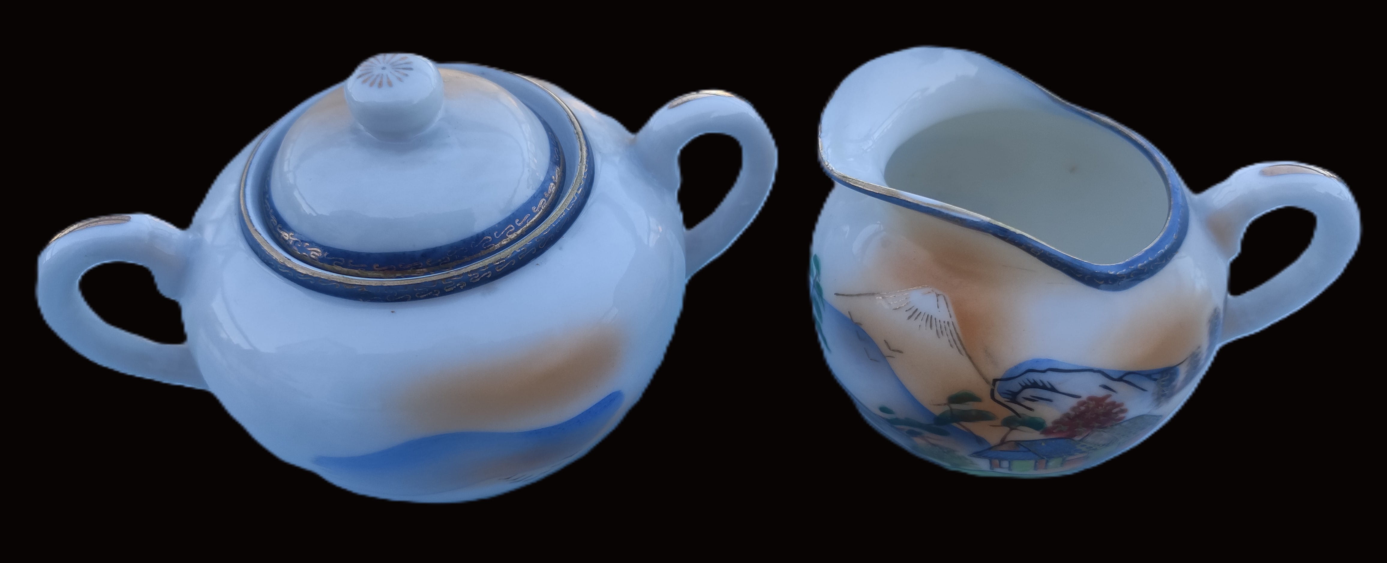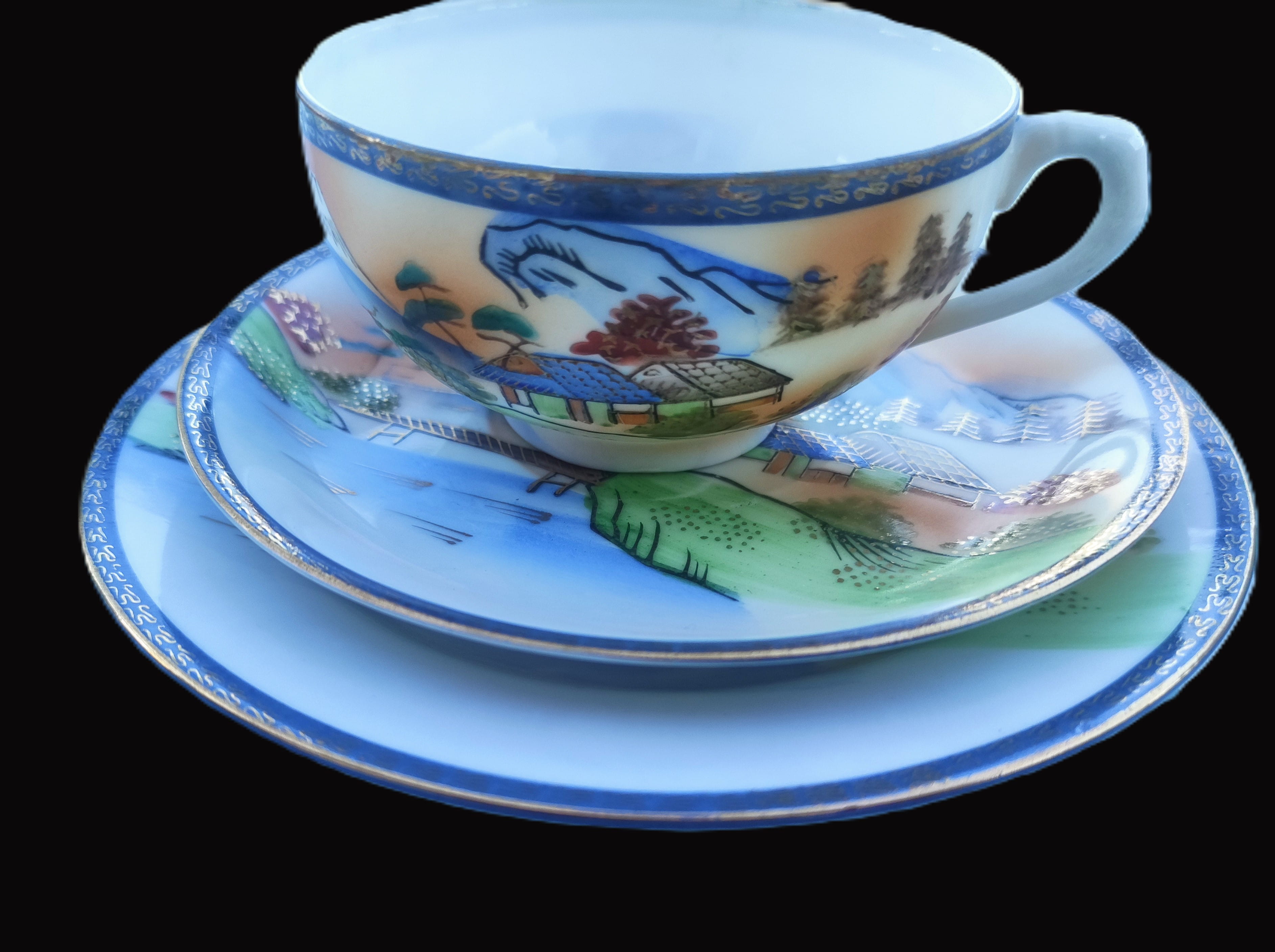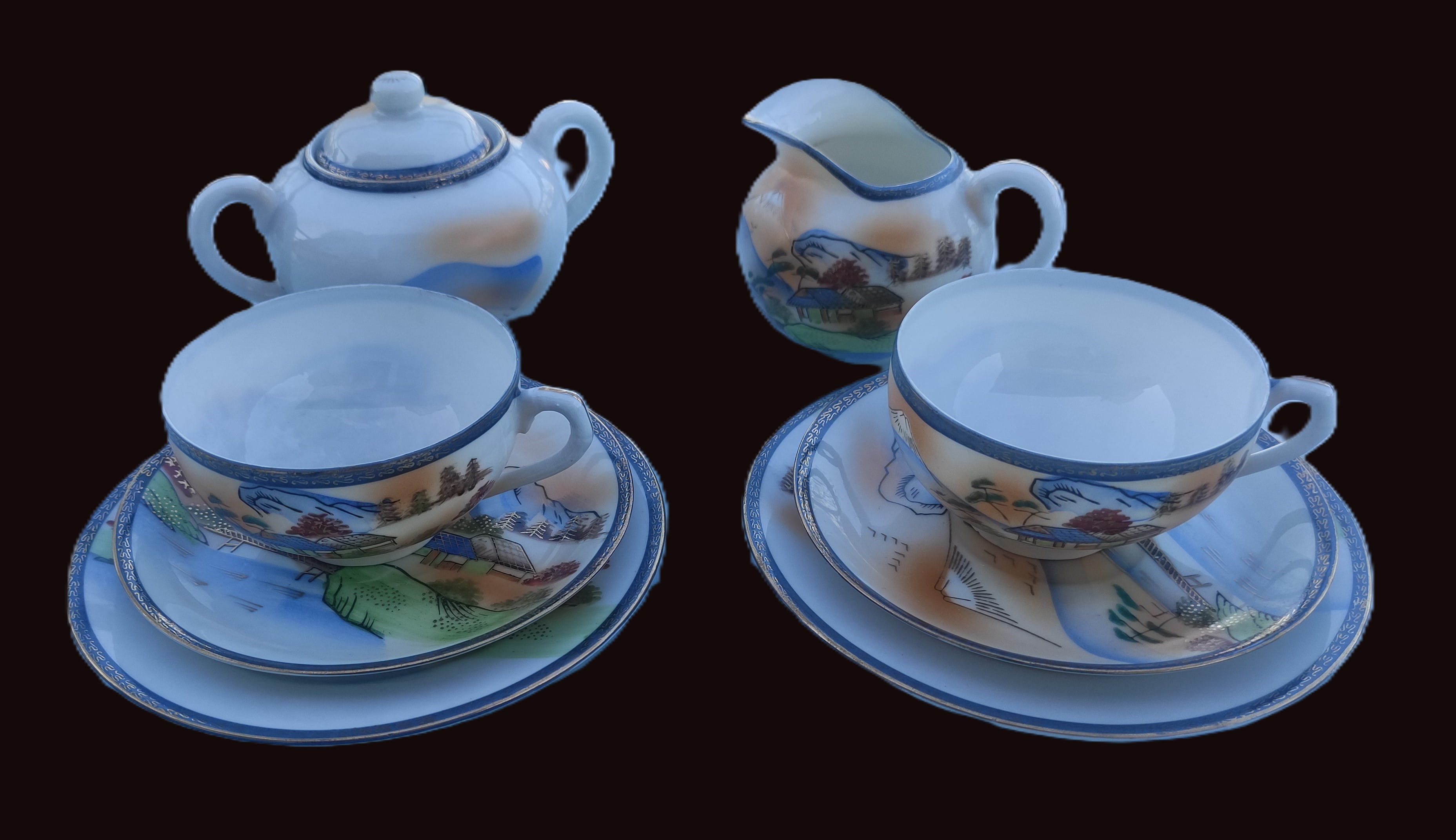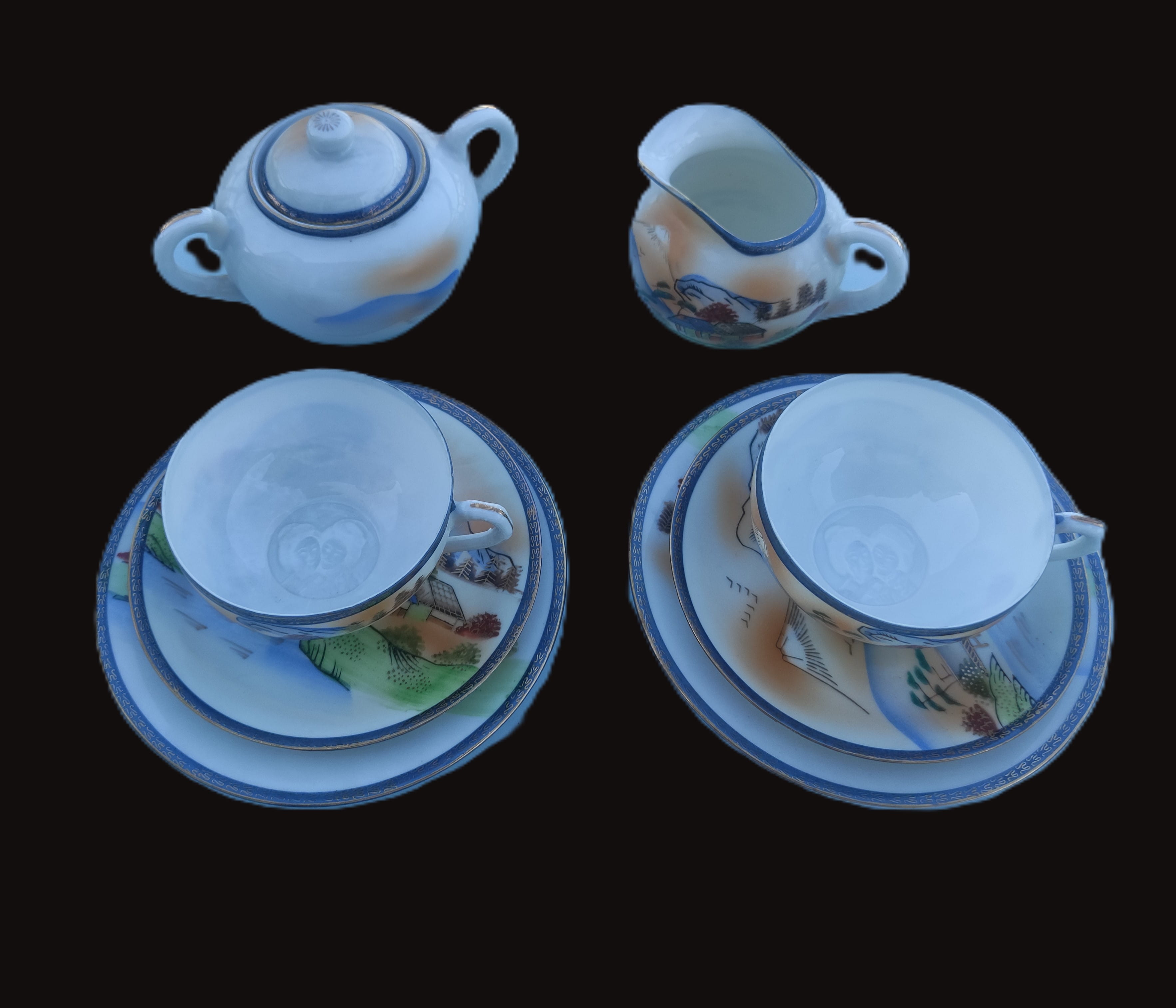 Antika Japon Lithophane Porselen Çay Takımı – El Boyaması