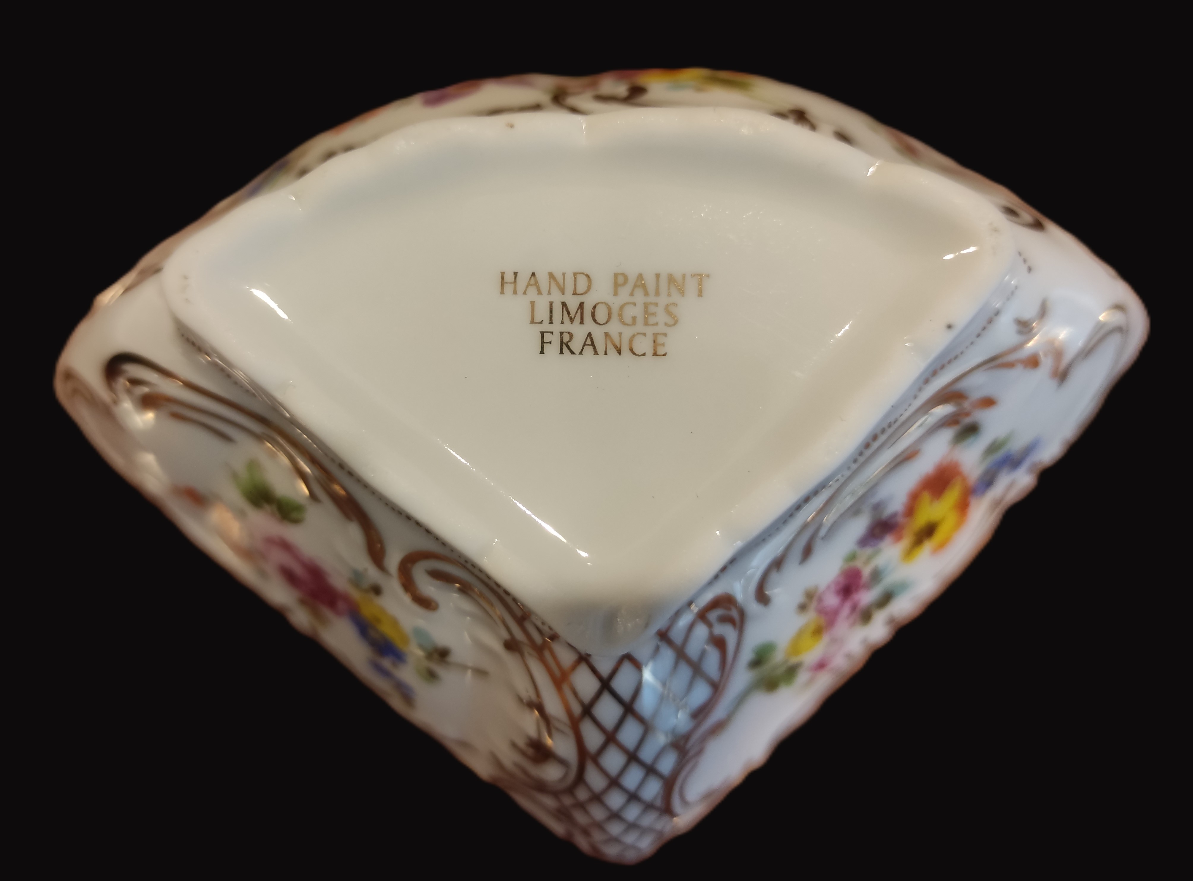 Damga: Alt kısmında altın harflerle “HAND PAINT – LIMOGES – FRANCE” ibaresi yer almaktadır.