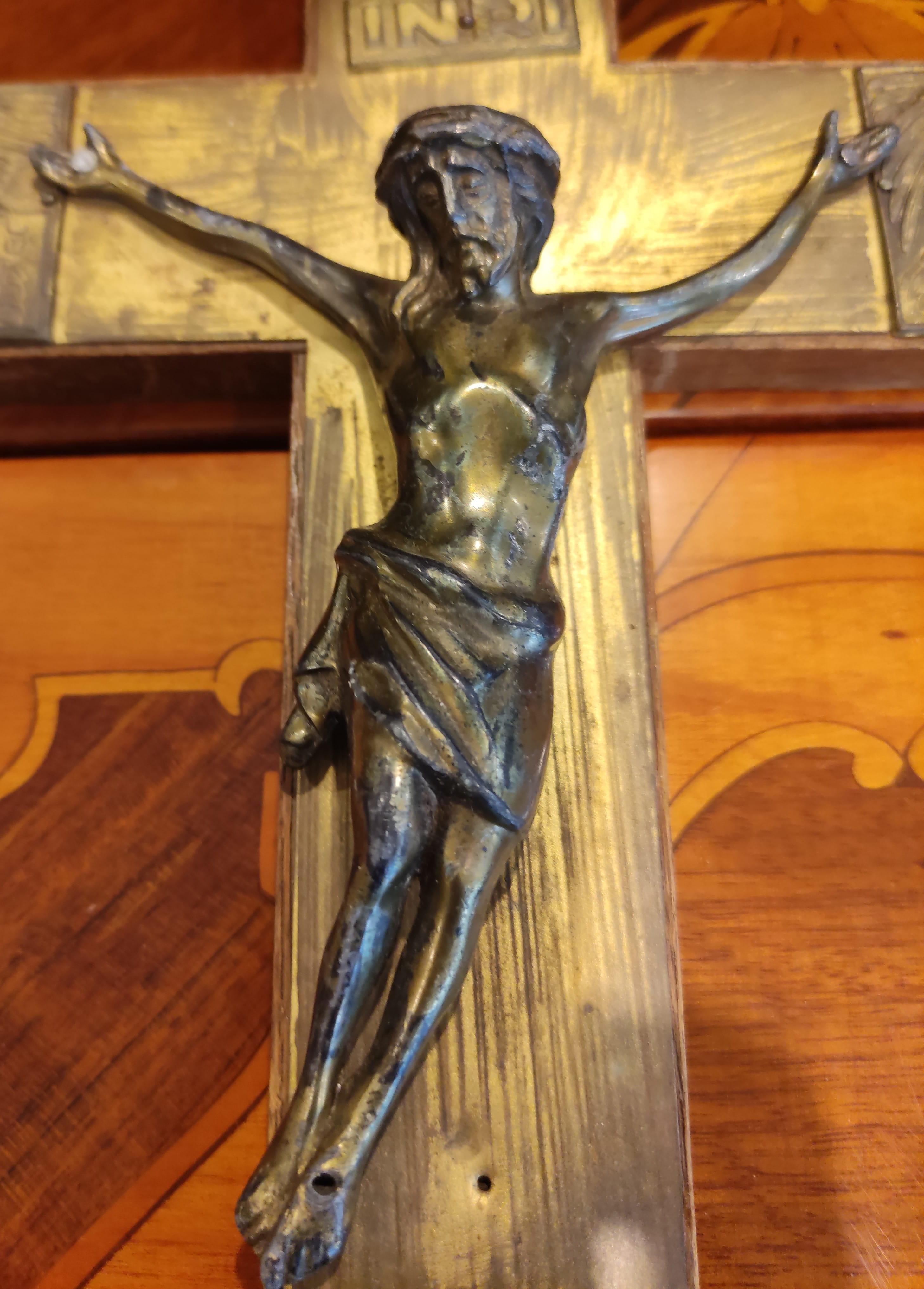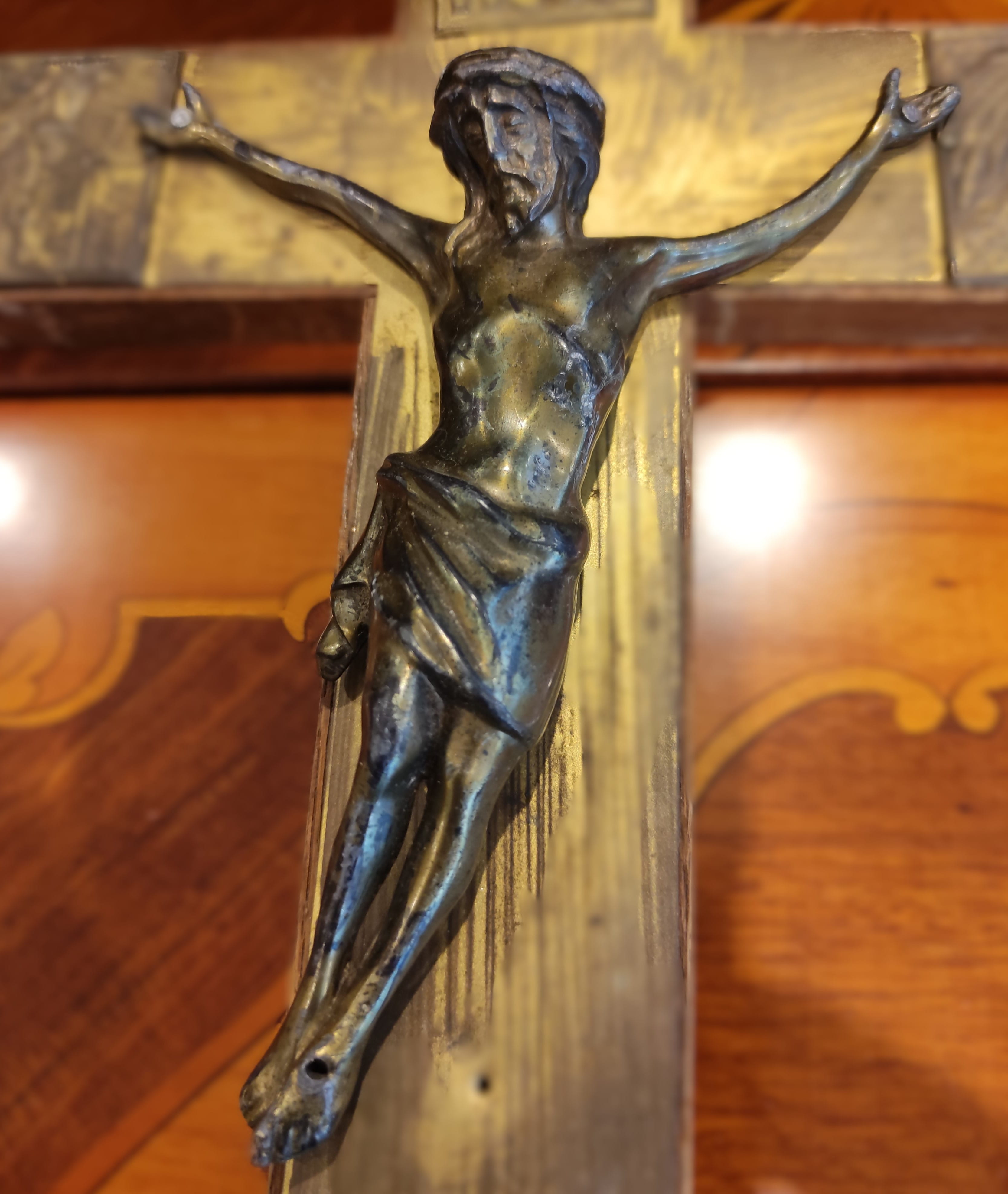 Merkezi Figür: İnce işçilikle detaylandırılmış, klasik formda İsa Mesih figürü ve üzerinde “INRI” ibaresi bulunmaktadır.