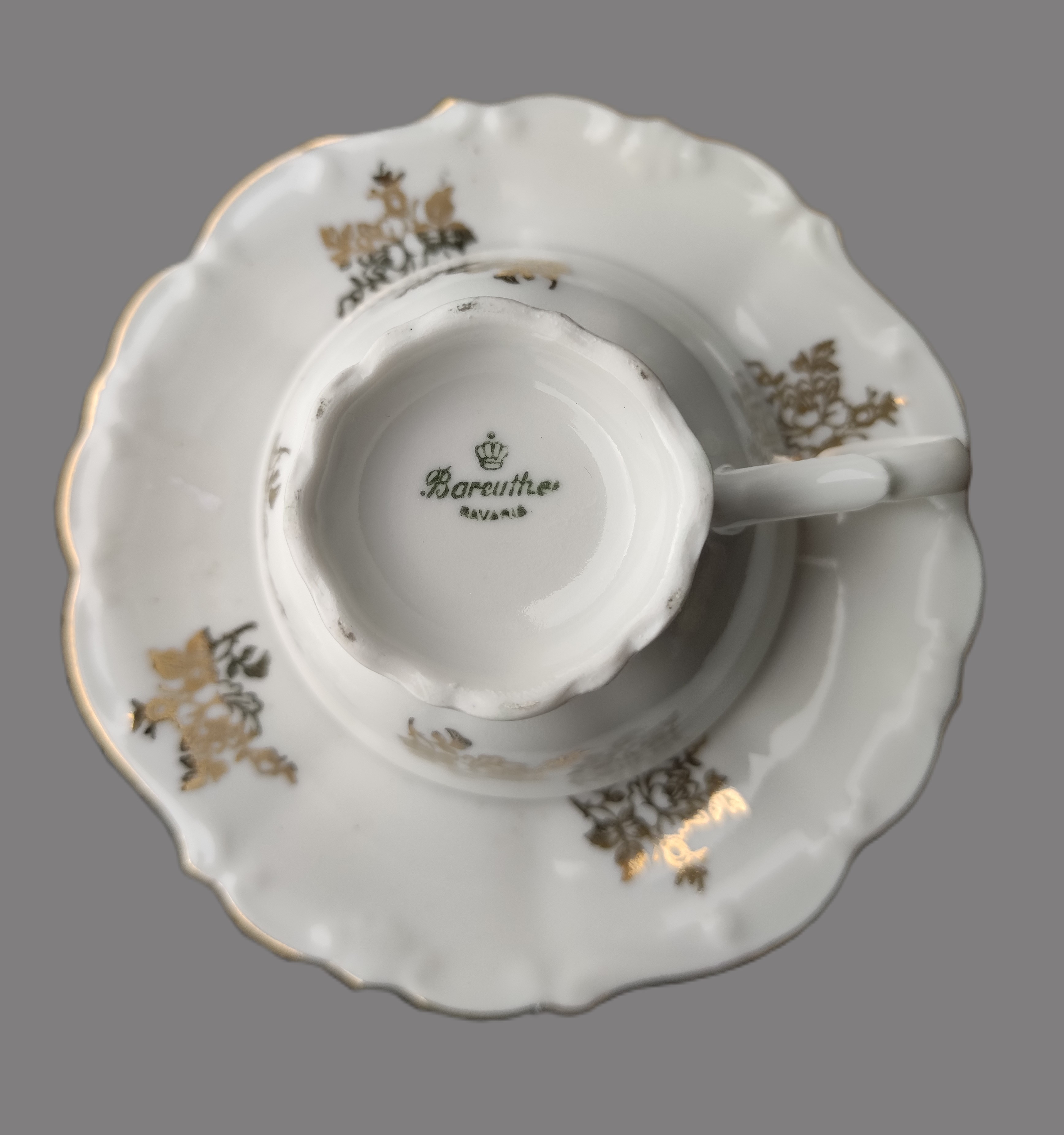 Bareuther Bavaria marka, koleksiyonluk porselen fincan ve altlık. Zarif tasarımı ve kaliteli Alman porseleni ile hem koleksiyoncular hem de şık sunumlar için uygundur.