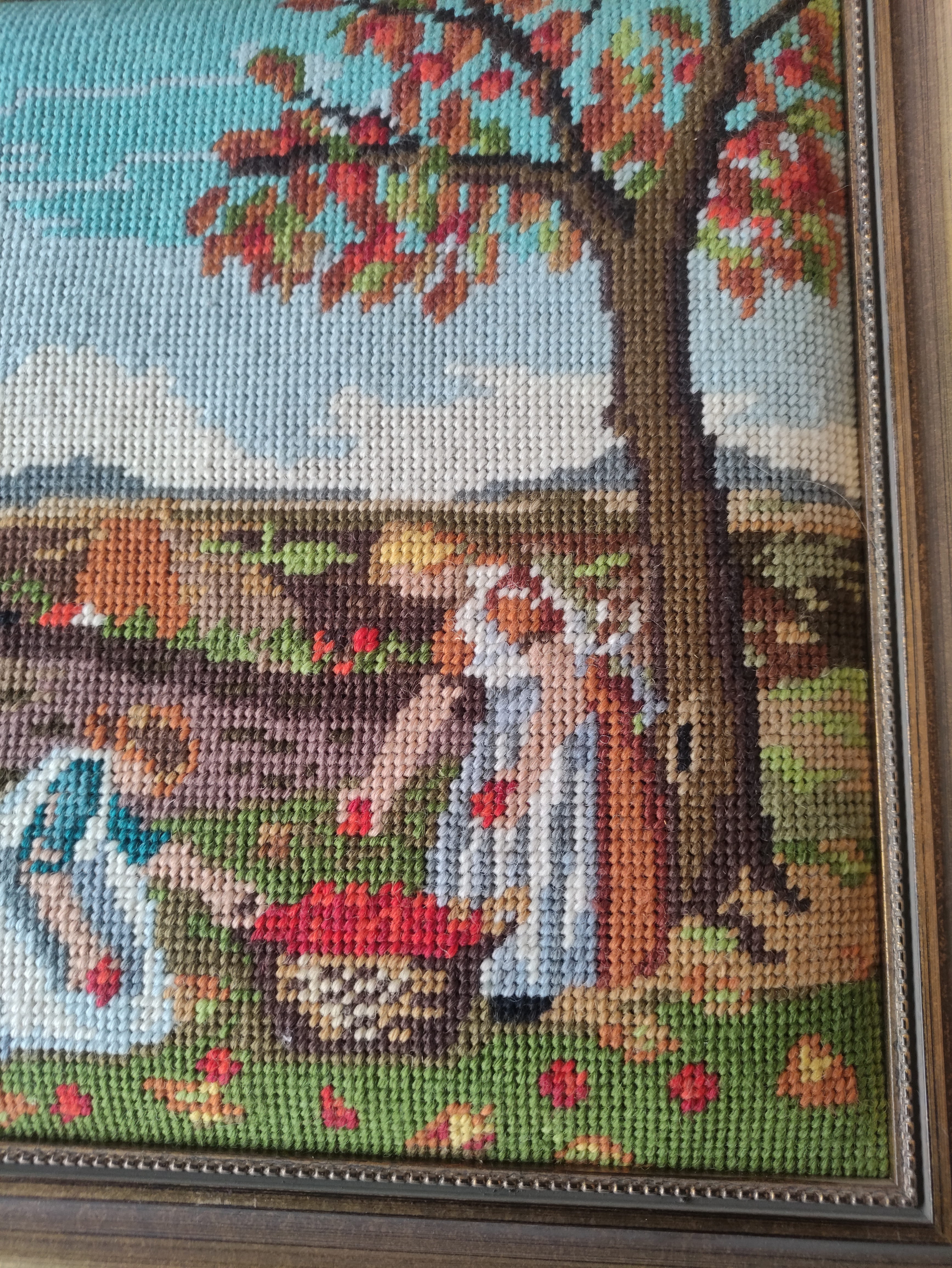Sık dokulu, kaliteli ipliklerle yapılmış el emeği göz nuru kanaviçe/gobelin.