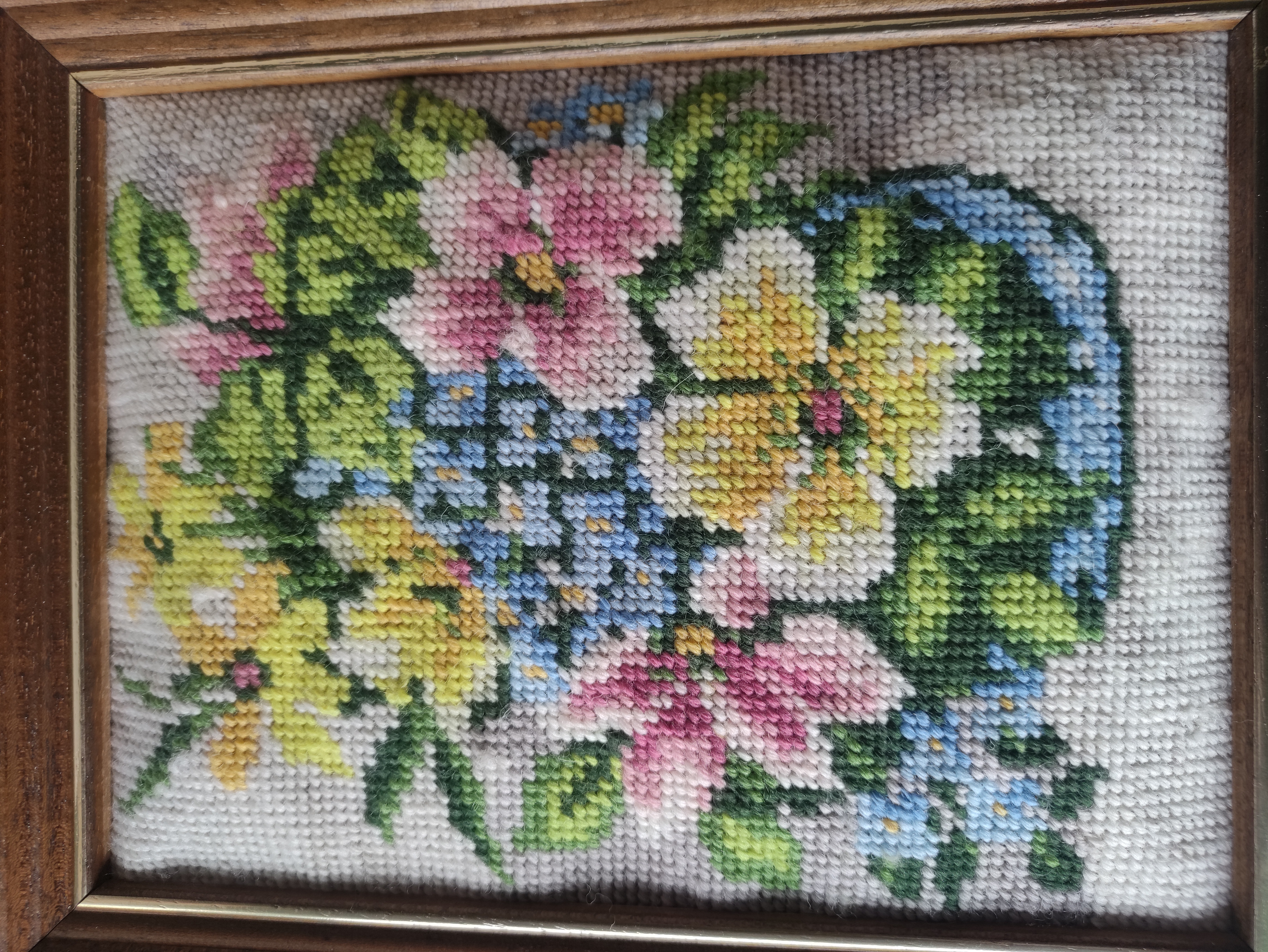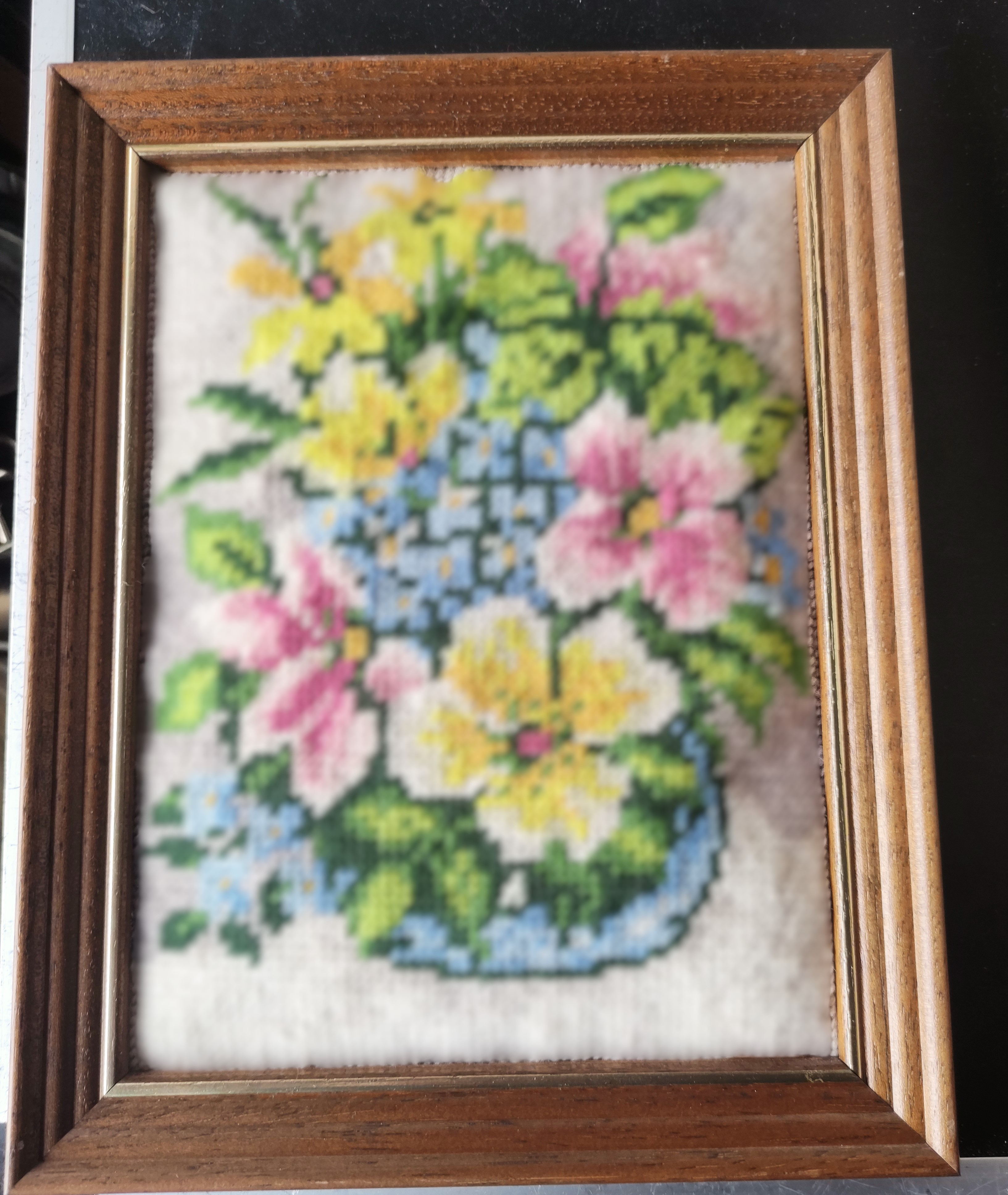 El İşlemesi Goblen Duvar Panosu – Ahşap Çerçeveli Çiçek Buketi