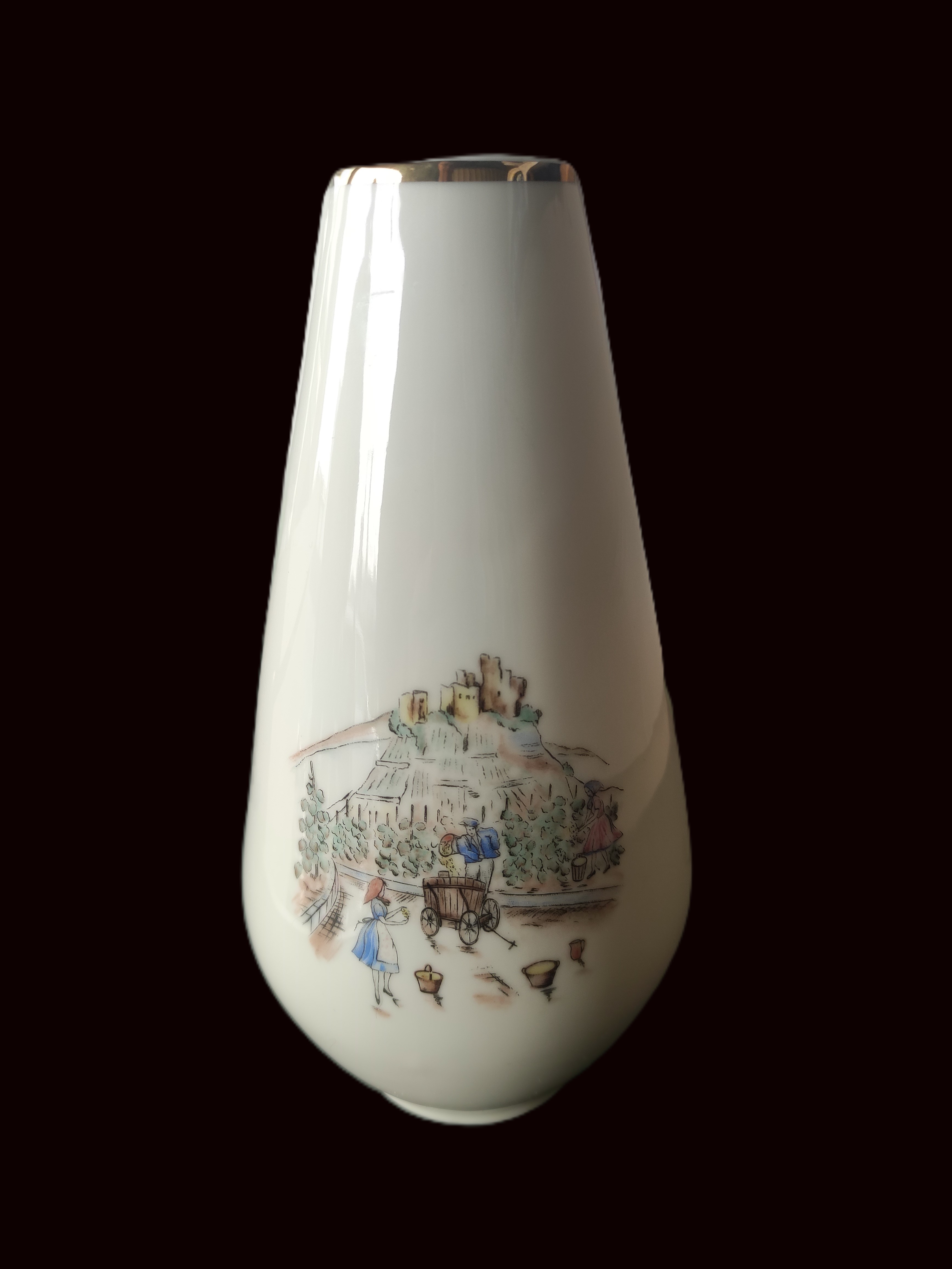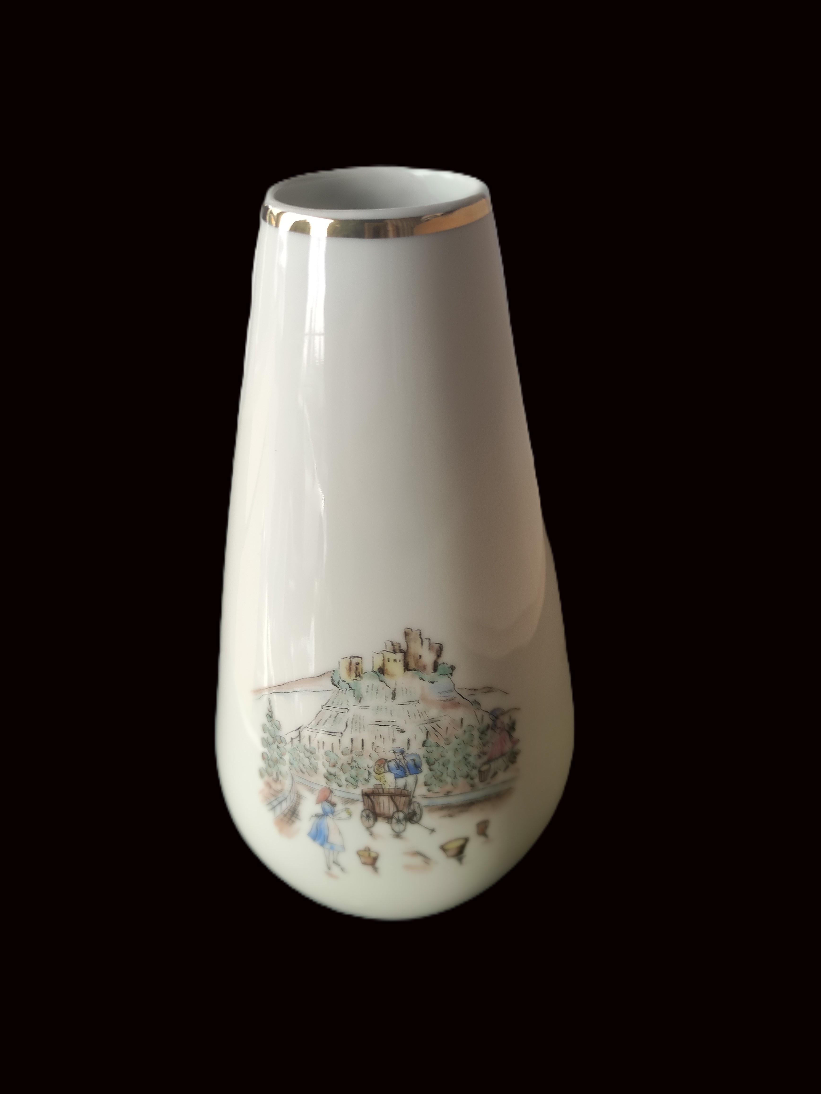 Klasik Bavaria Porselen Vazo – Altın Yaldızlı ve Çift Taraflı Manzara Motifli