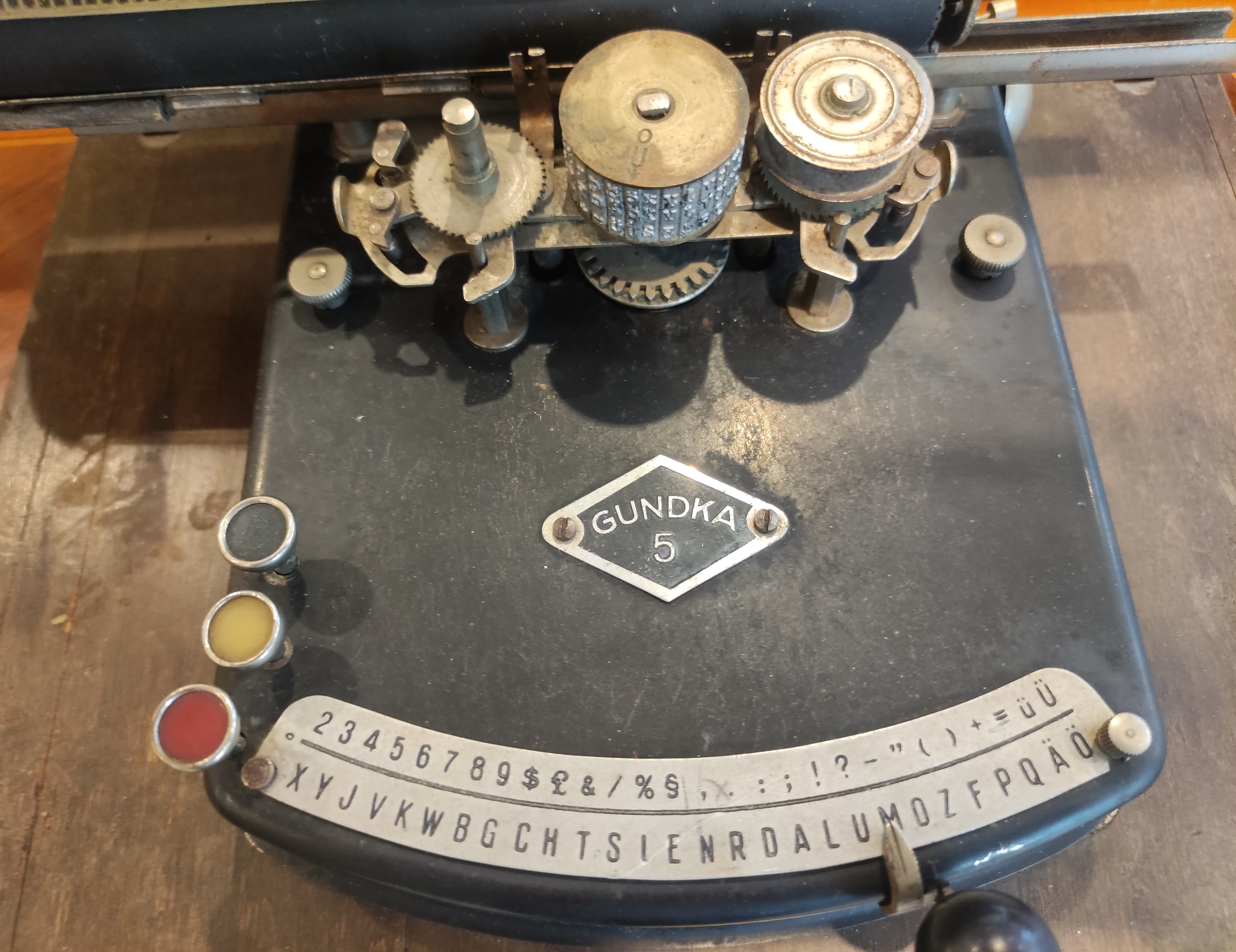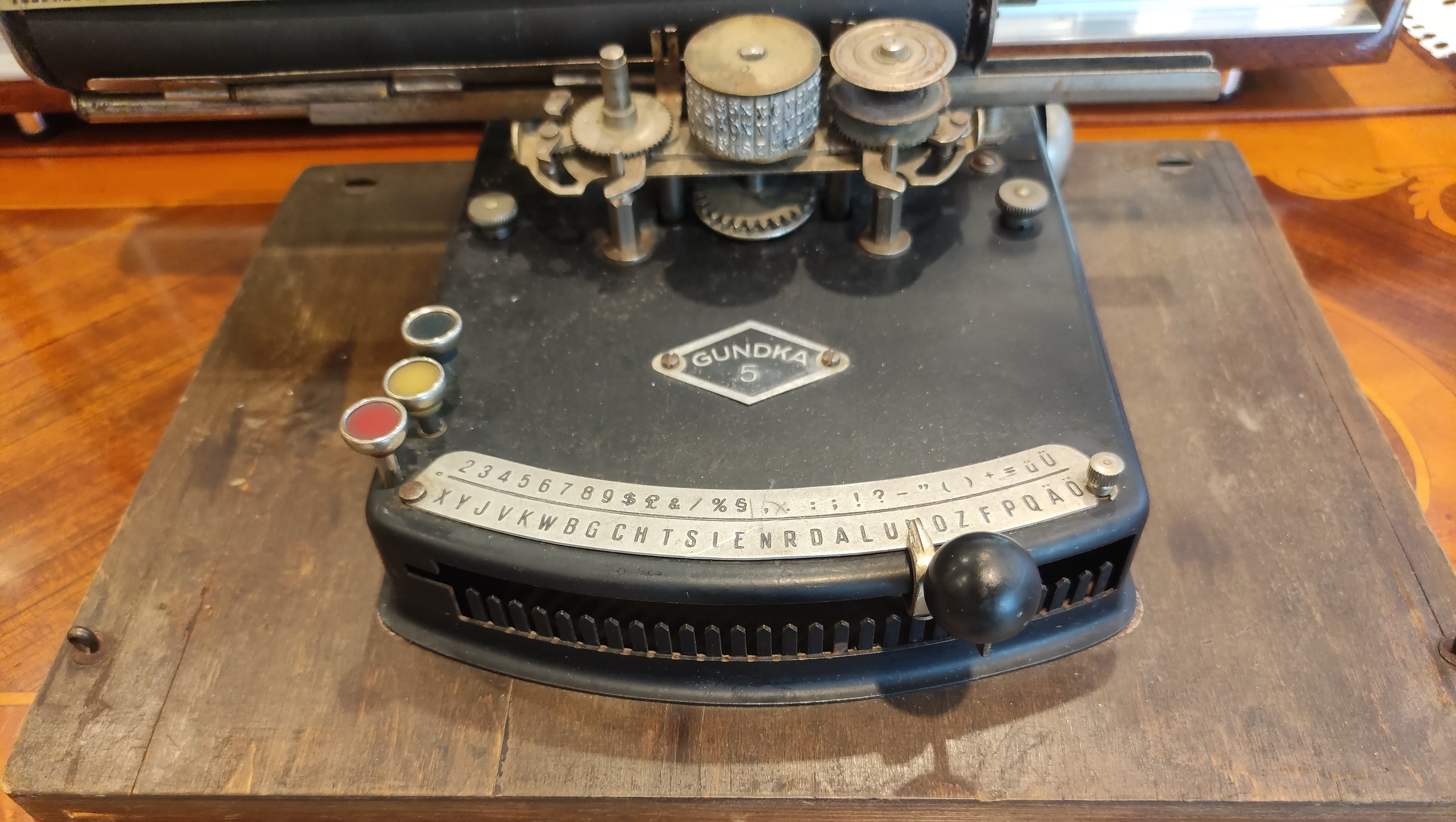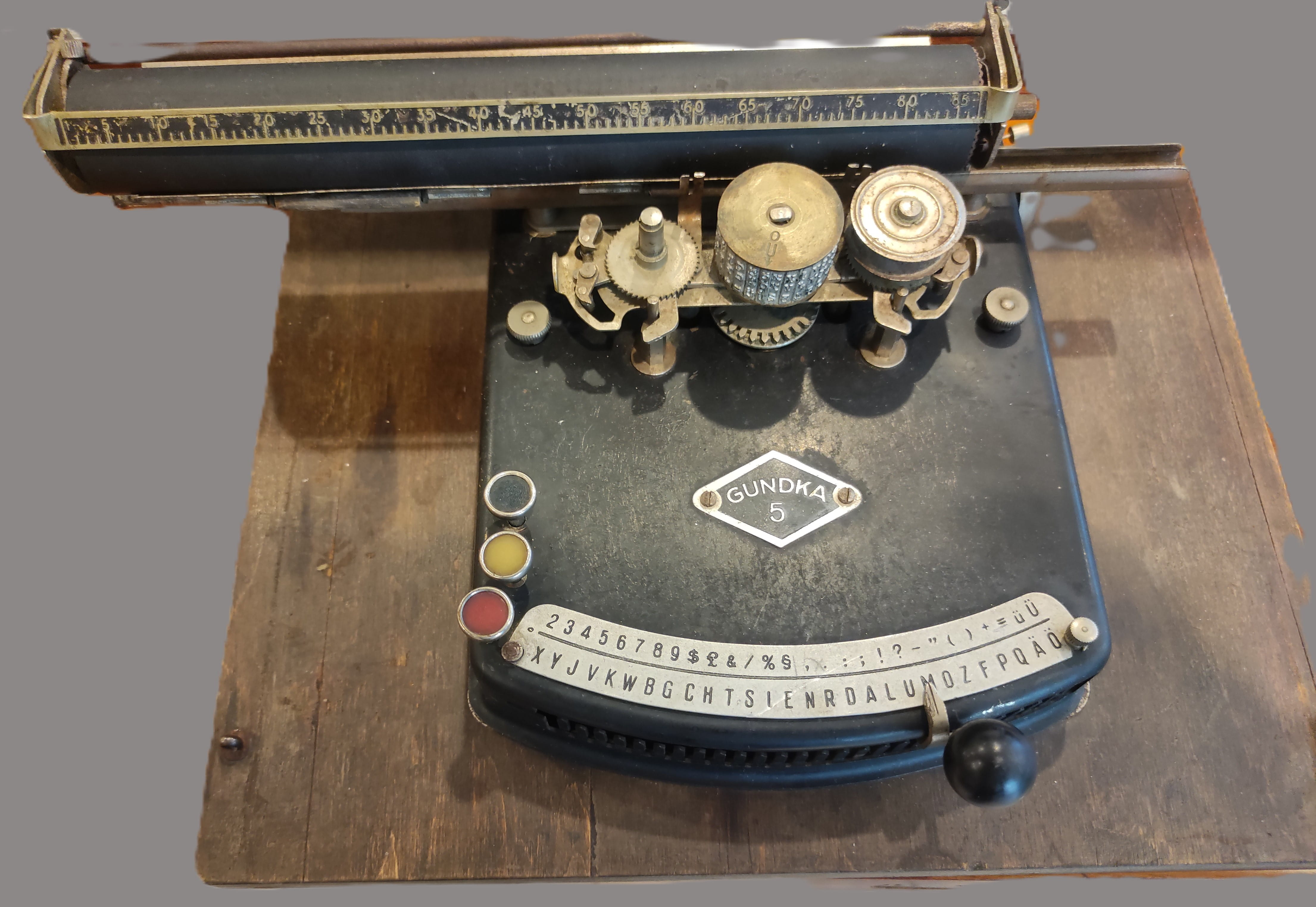 Koleksiyoncular için gerçek bir mücevher! Klasik tuşlu daktilolardan farklı olarak, özel bir gösterge (indeks) mekanizmasıyla çalışan bu Gundka 5, daktilo tarihinin en ikonik tasarımlarından biridir.