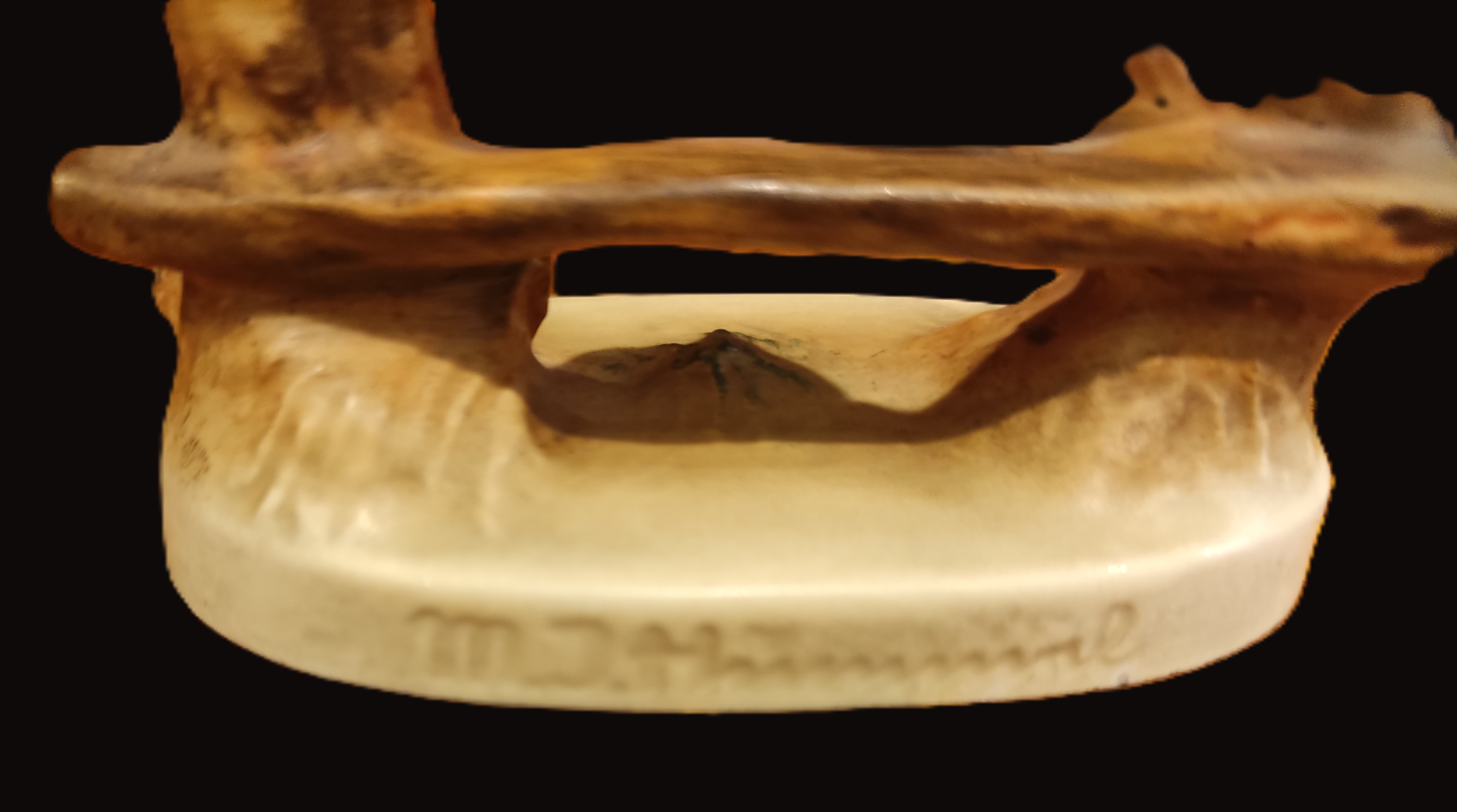 Kaidenin arka kenarında sanatçının imzası olan “M.I. Hummel” kabartması mevcuttur.