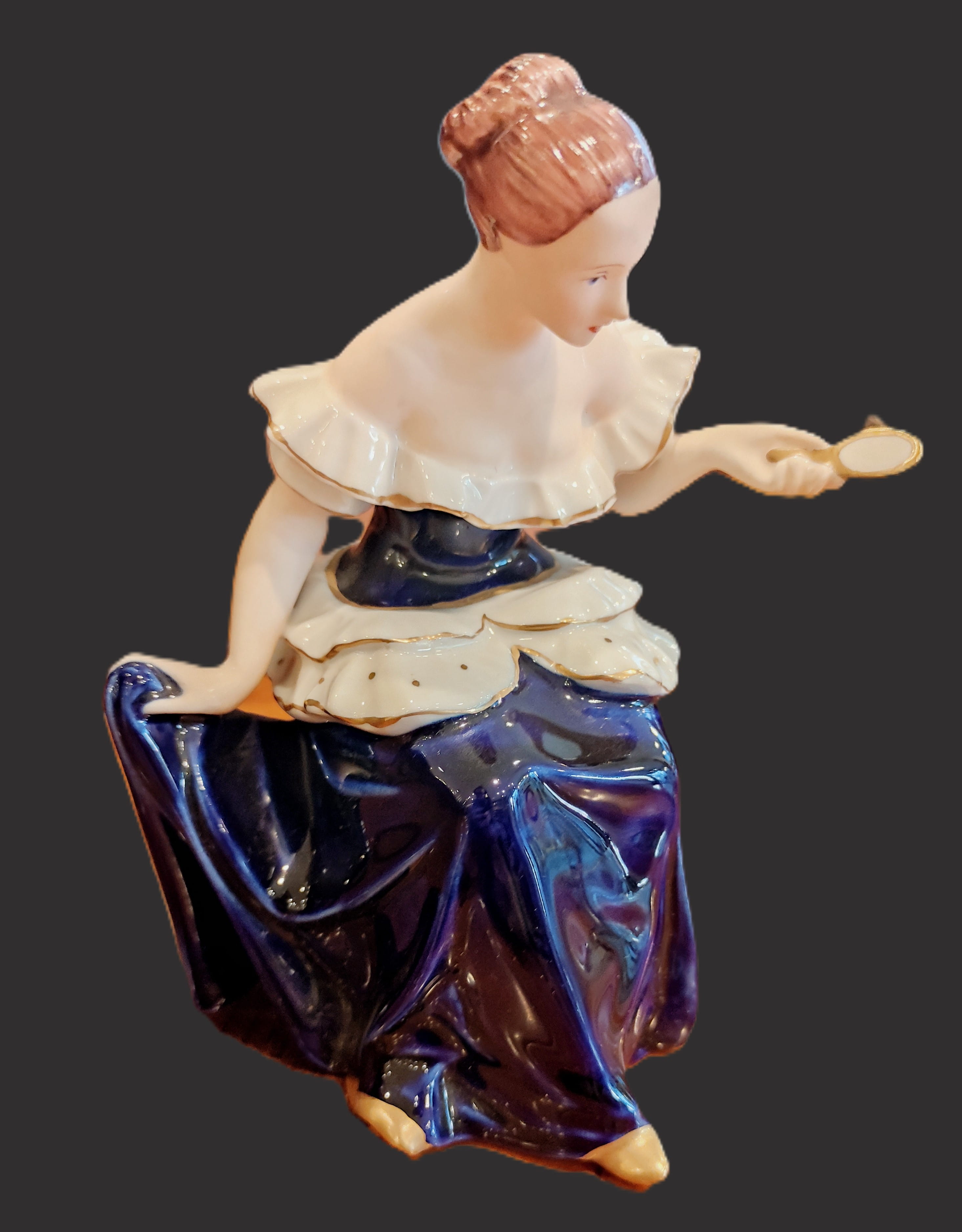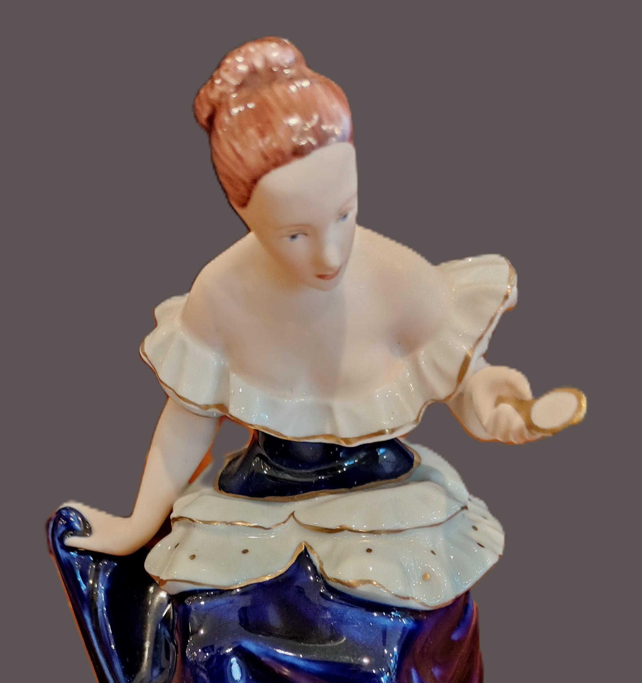 Koleksiyoncular için gerçek bir şaheser! Dünyaca ünlü Çek porselen markası Royal Dux Bohemia tarafından üretilmiş, el boyaması zarif kadın figürü.