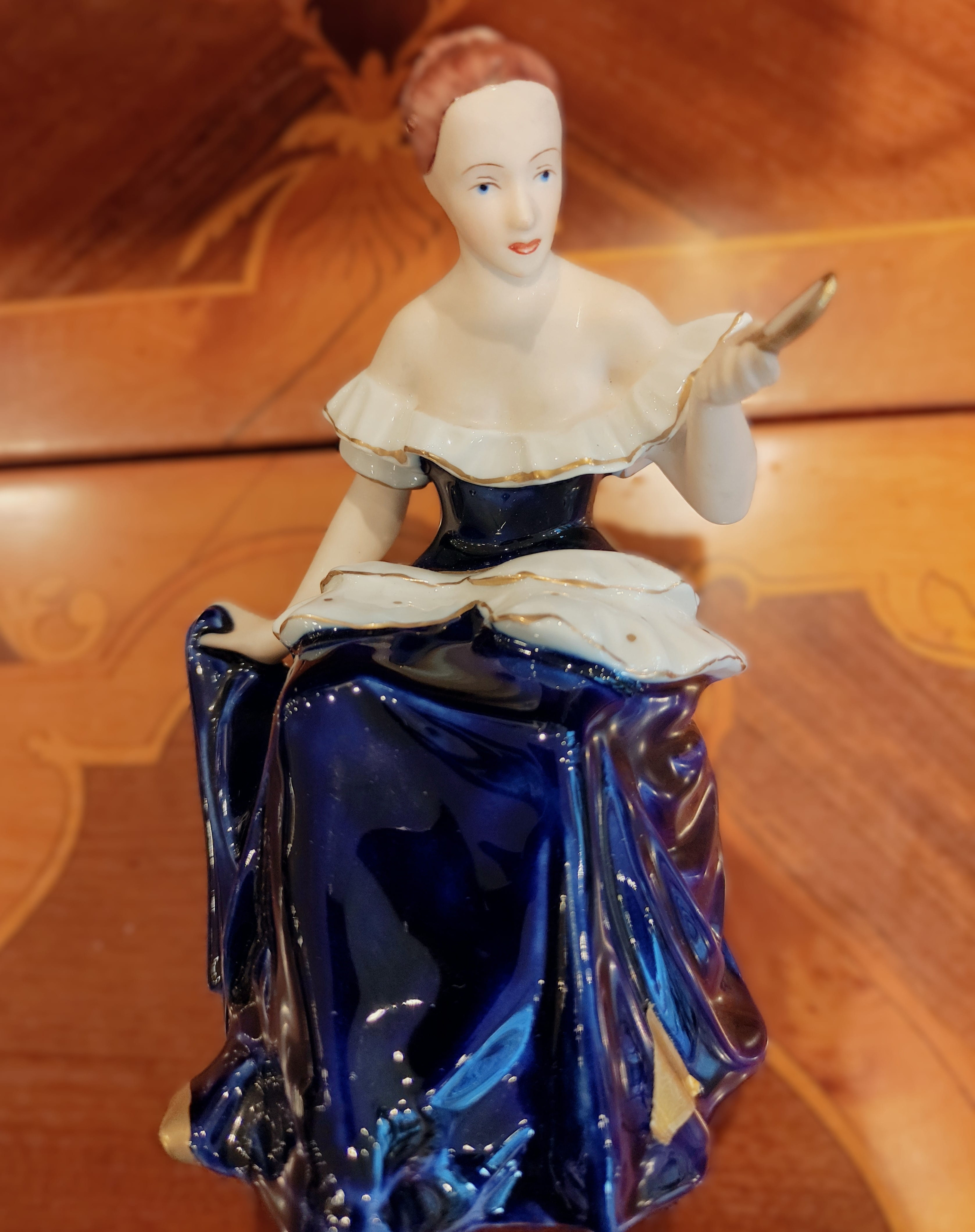 Tasarım: Rokoko tarzında elinde ayna tutan asil kadın figürü.