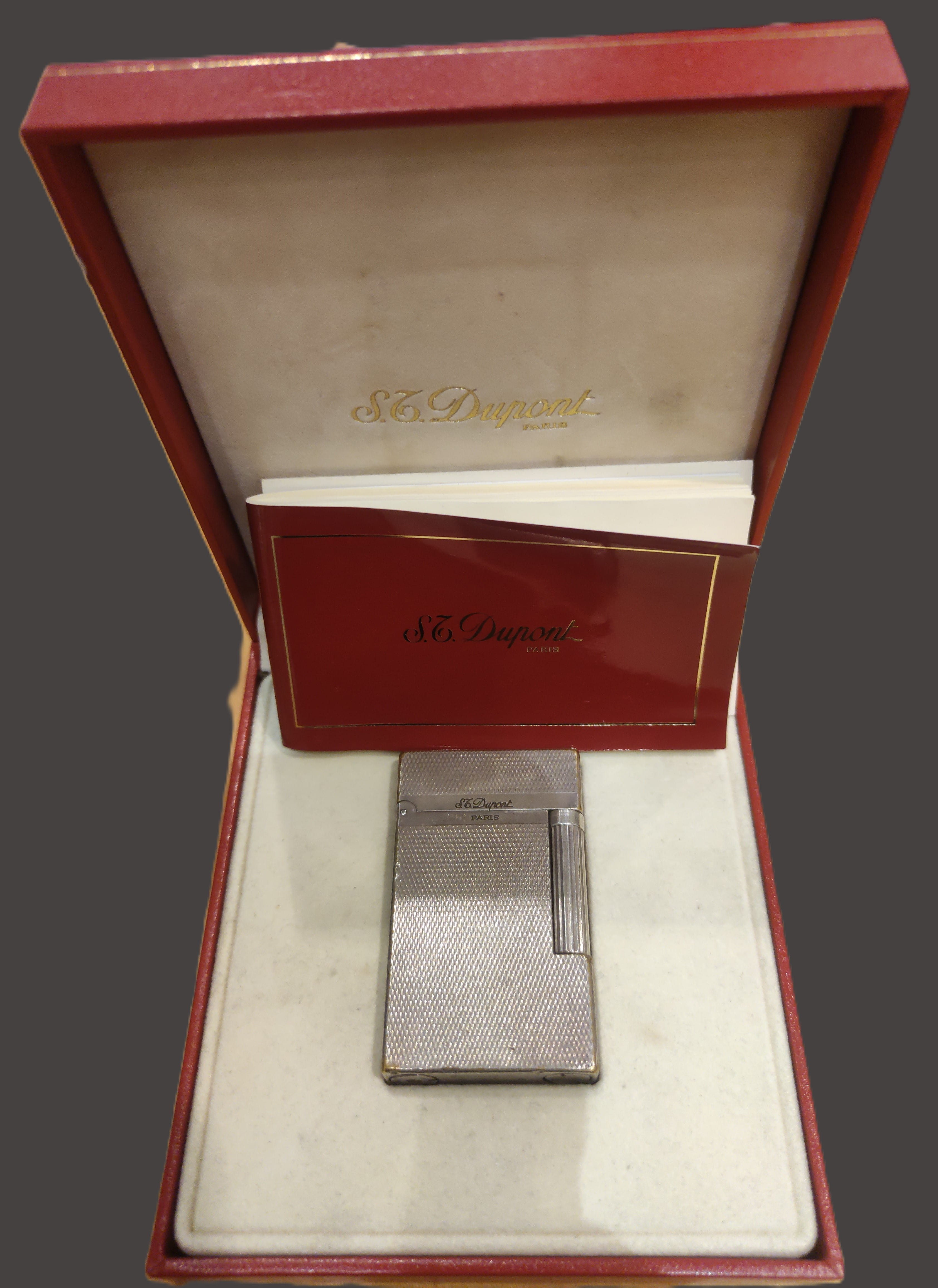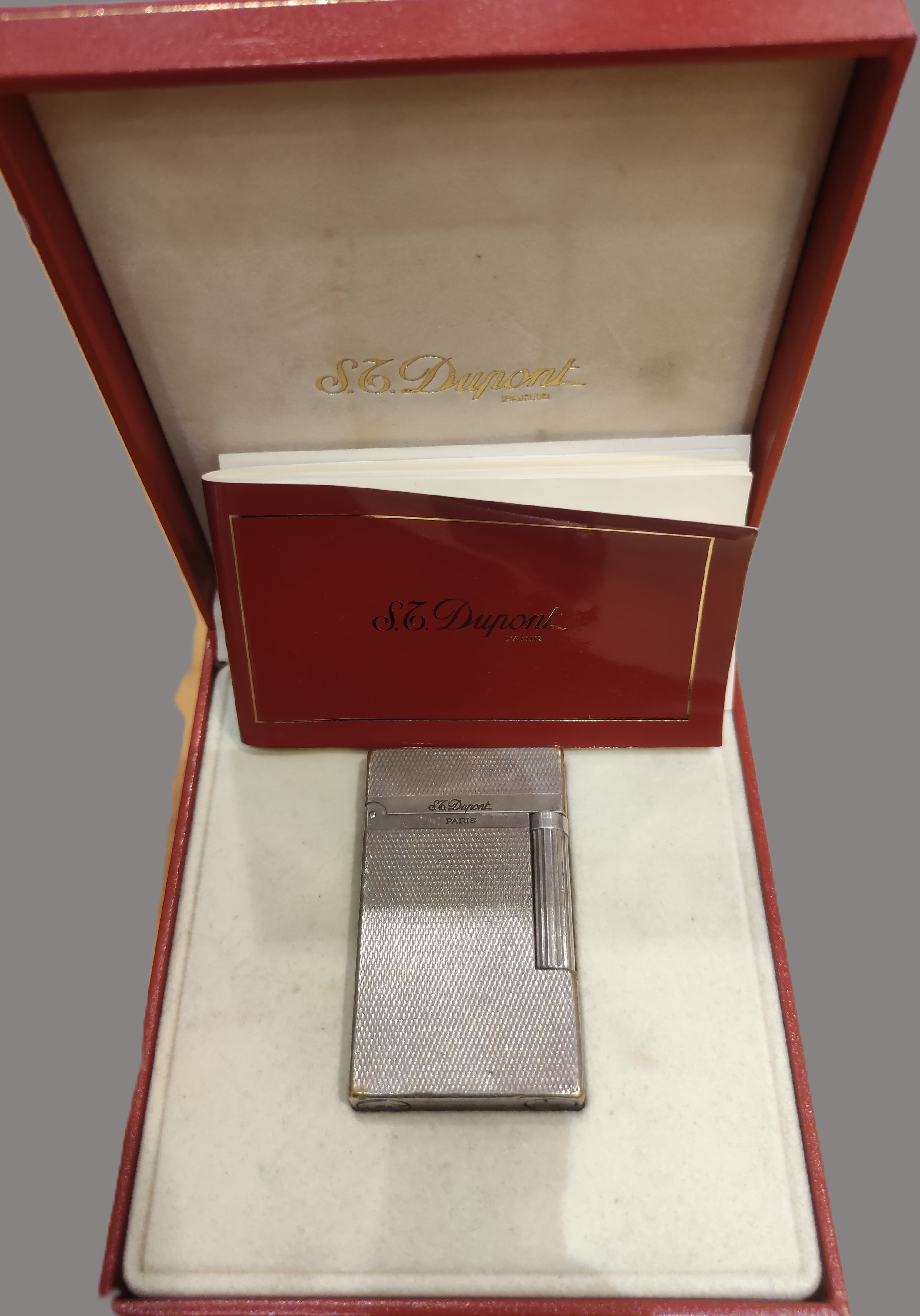 Lüks aksesuar dünyasının zirvesi S.T. Dupont markasına ait, koleksiyonluk bir set. Bu parça, markanın zamansız “diamond head” (elmas kafa) desenli gümüş kaplama serisinden olup, yılların getirdiği karakteri üzerinde taşımaktadır.