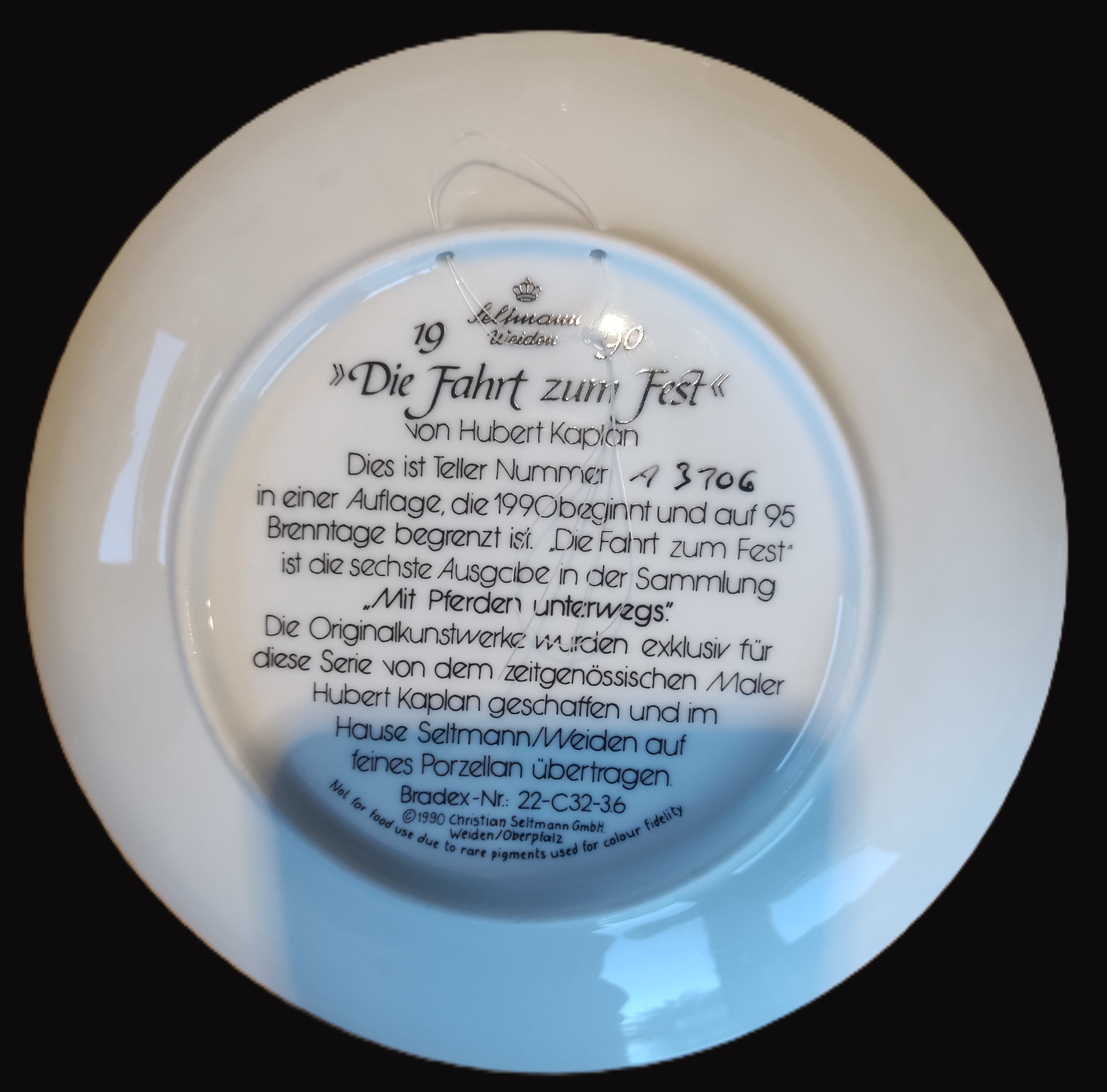 Alman porselen devi Seltmann Weiden tarafından 1990 yılında üretilmiş, sanatsal değeri yüksek ve koleksiyonluk bir porselen tabak. Ünlü ressam Hubert Kaplan’ın orijinal eserinden ilham alınarak hazırlanmıştır.