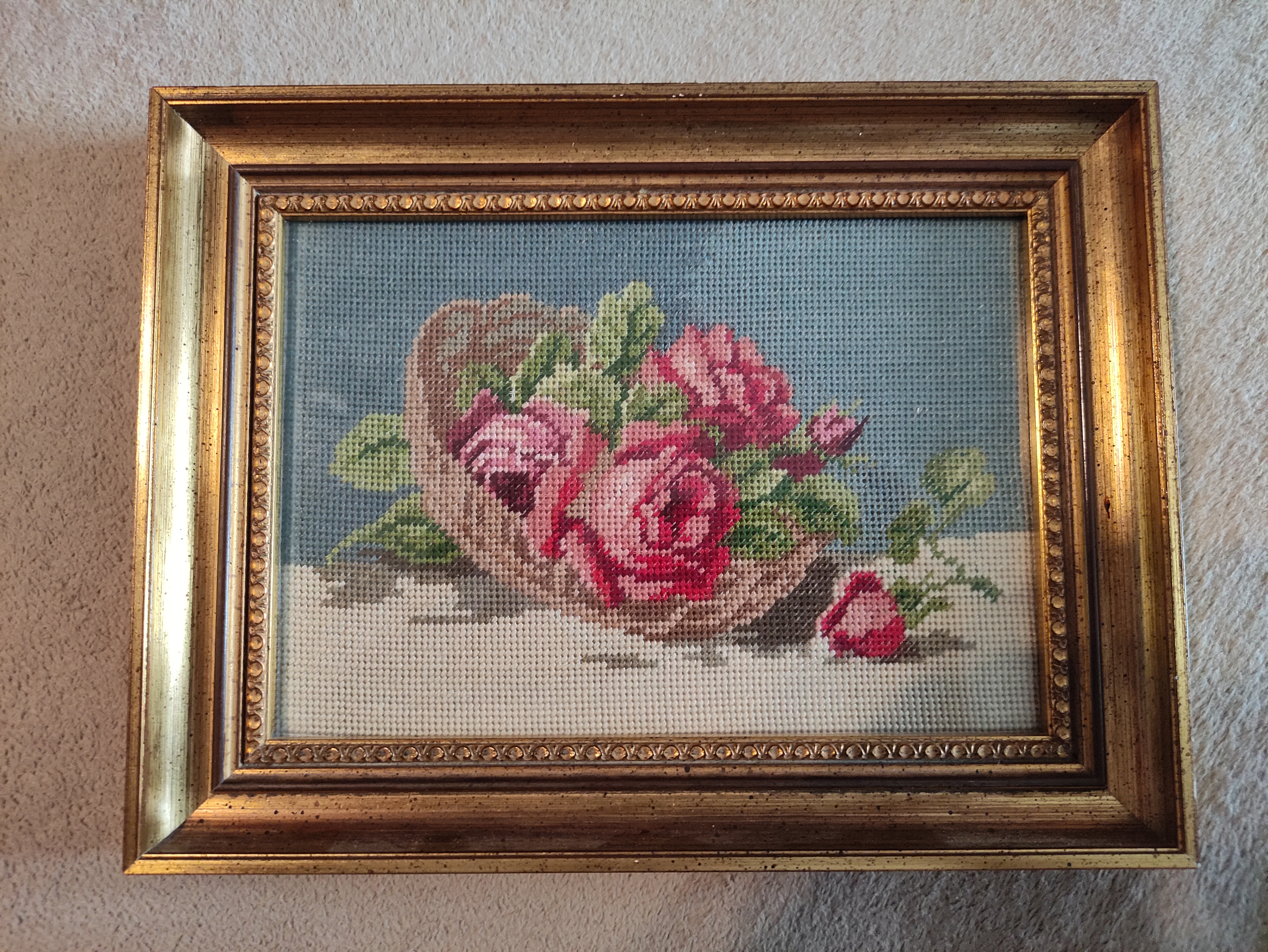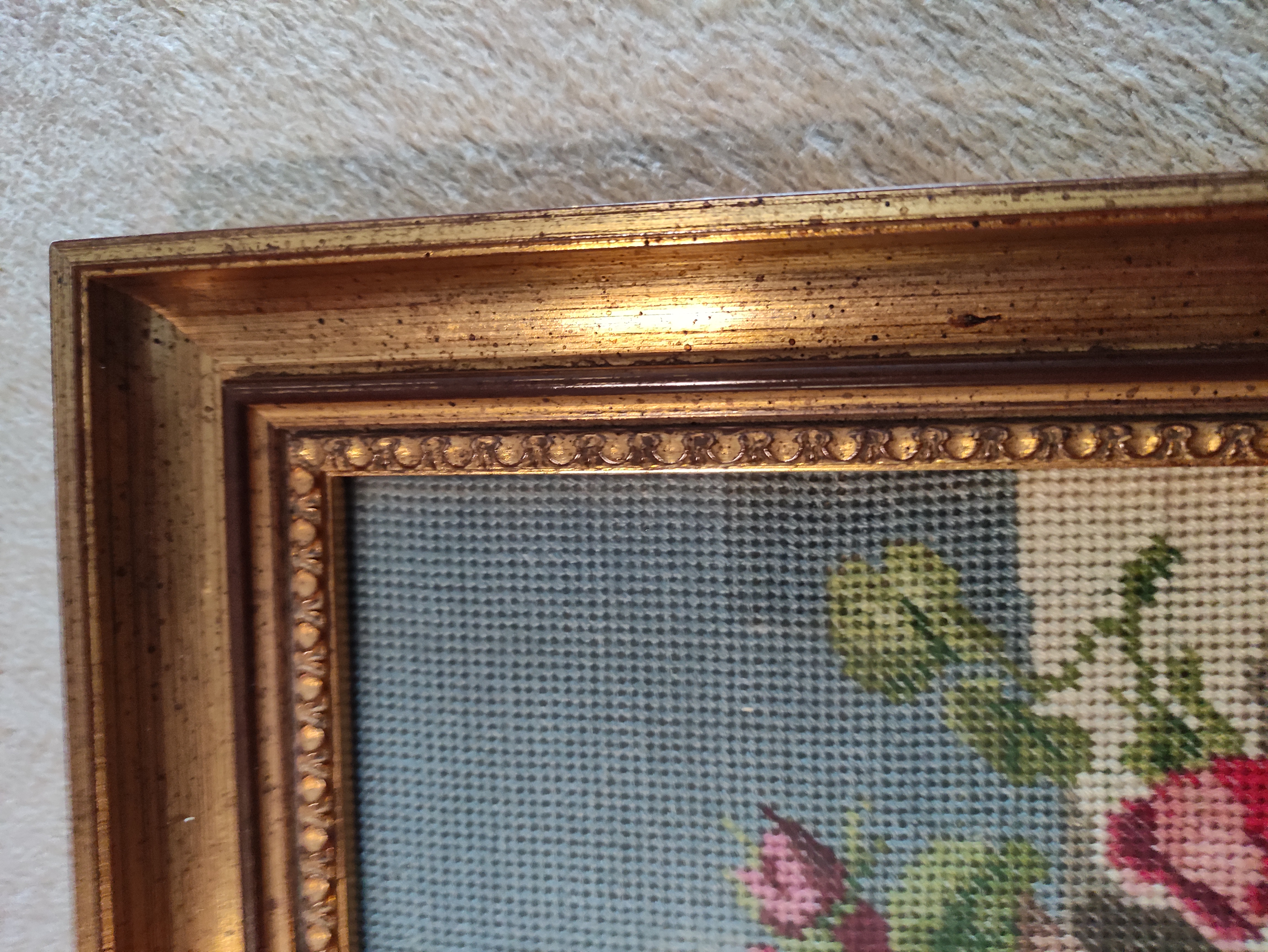 Çiçek desenli şık goblen tablo. Yüksek kaliteli çerçevesiyle birlikte sunulmaktadır. Ev dekorasyonu ve koleksiyon için idealdir.