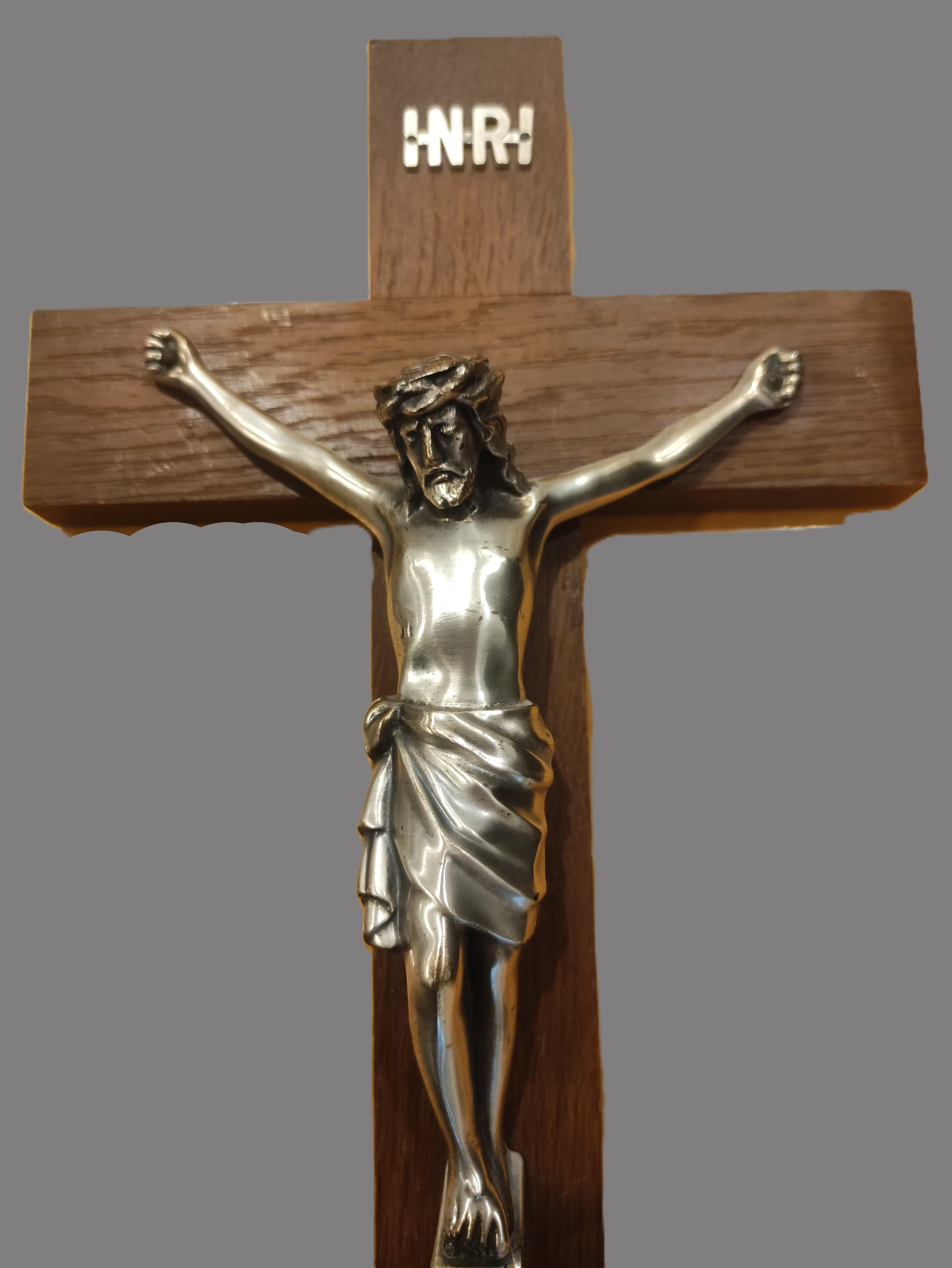 INRI Yazısı: Haçın üst kısmında, Latince “Iesus Nazarenus, Rex Iudaeorum” (Nasıralı İsa, Yahudilerin Kralı) anlamına gelen INRI ibaresi metal bir plaka olarak yer almaktadır.